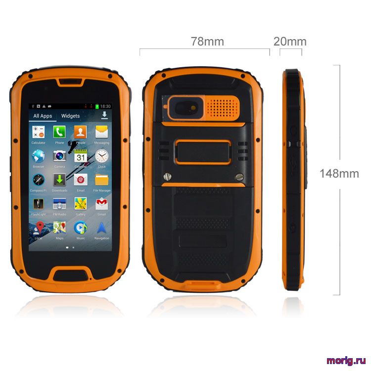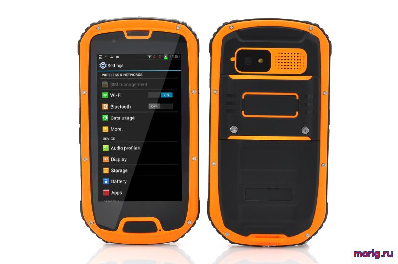 мощная начинка в ударо прочном, пыле-грязе-водозащищенном корпусе, обладающего высоким международным стандартом защитыIP68 и четырех ядерным процессором MTK 6589, с тактовой частотой 1.2 ГГц.  качественный4,3 дюймовый  QHD дисплей с разрешением в 960x540 пикселей, надежно